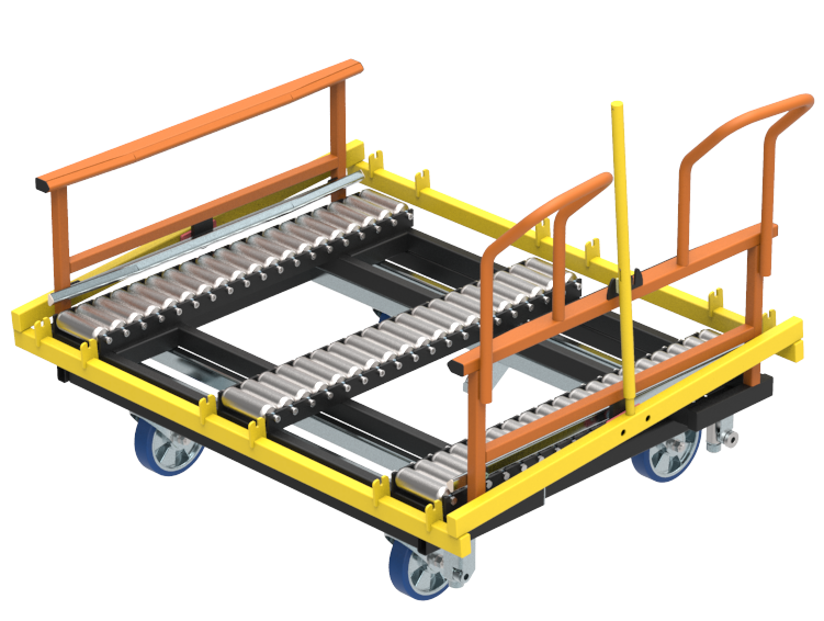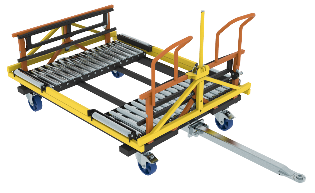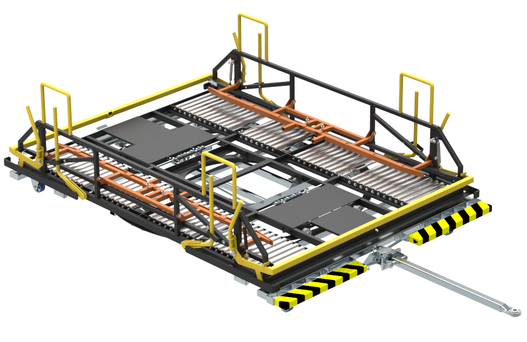 Comprehensive intralogistics systems—from mother‑daughter cart solutions (E‑frame, T‑frame, C‑frame, H‑frame) to workstation platforms and roller carts. Our systems enable flexible, safe, and efficient transport of raw materials and finished goods.