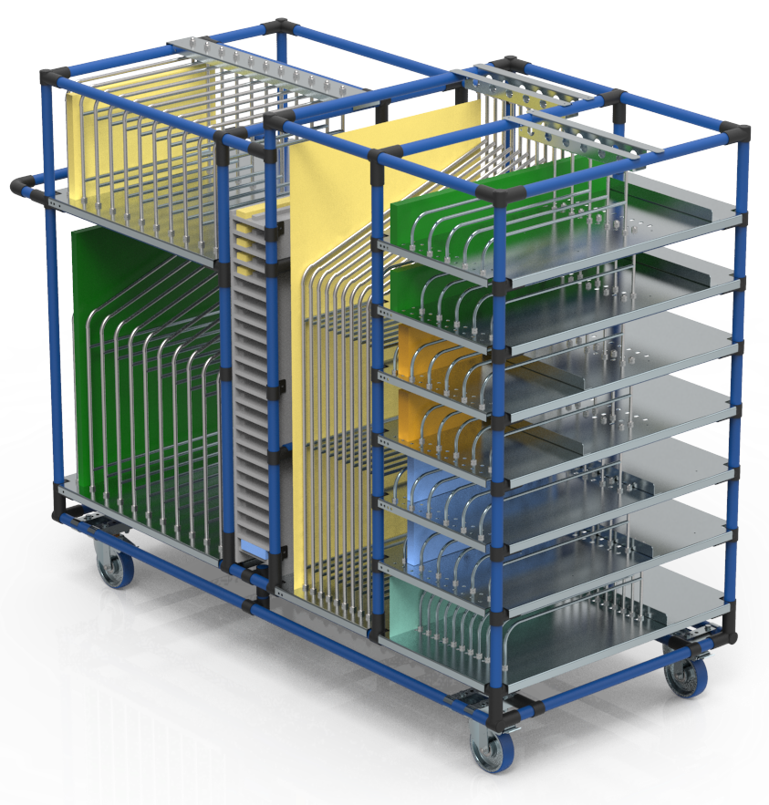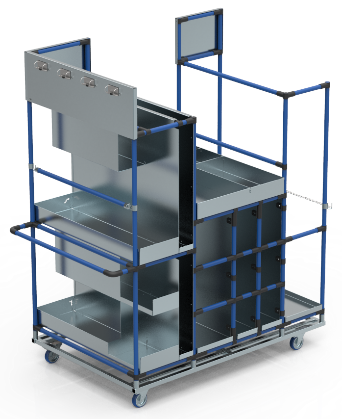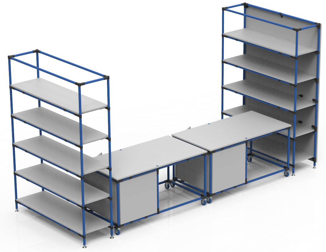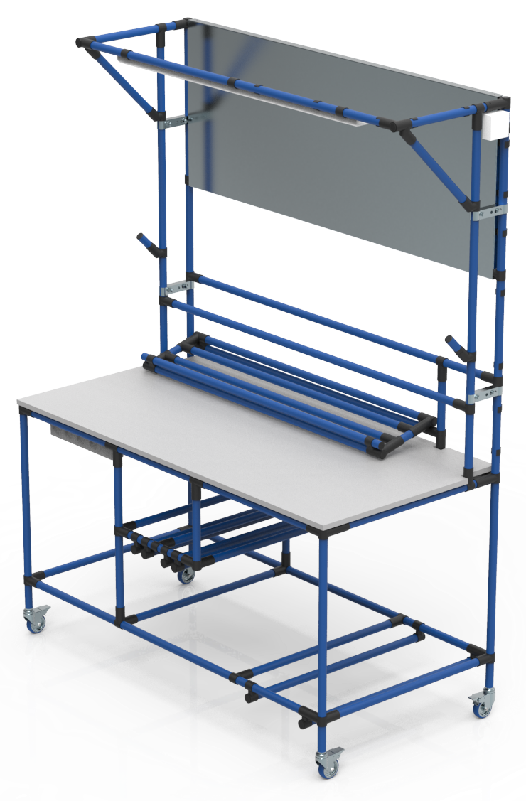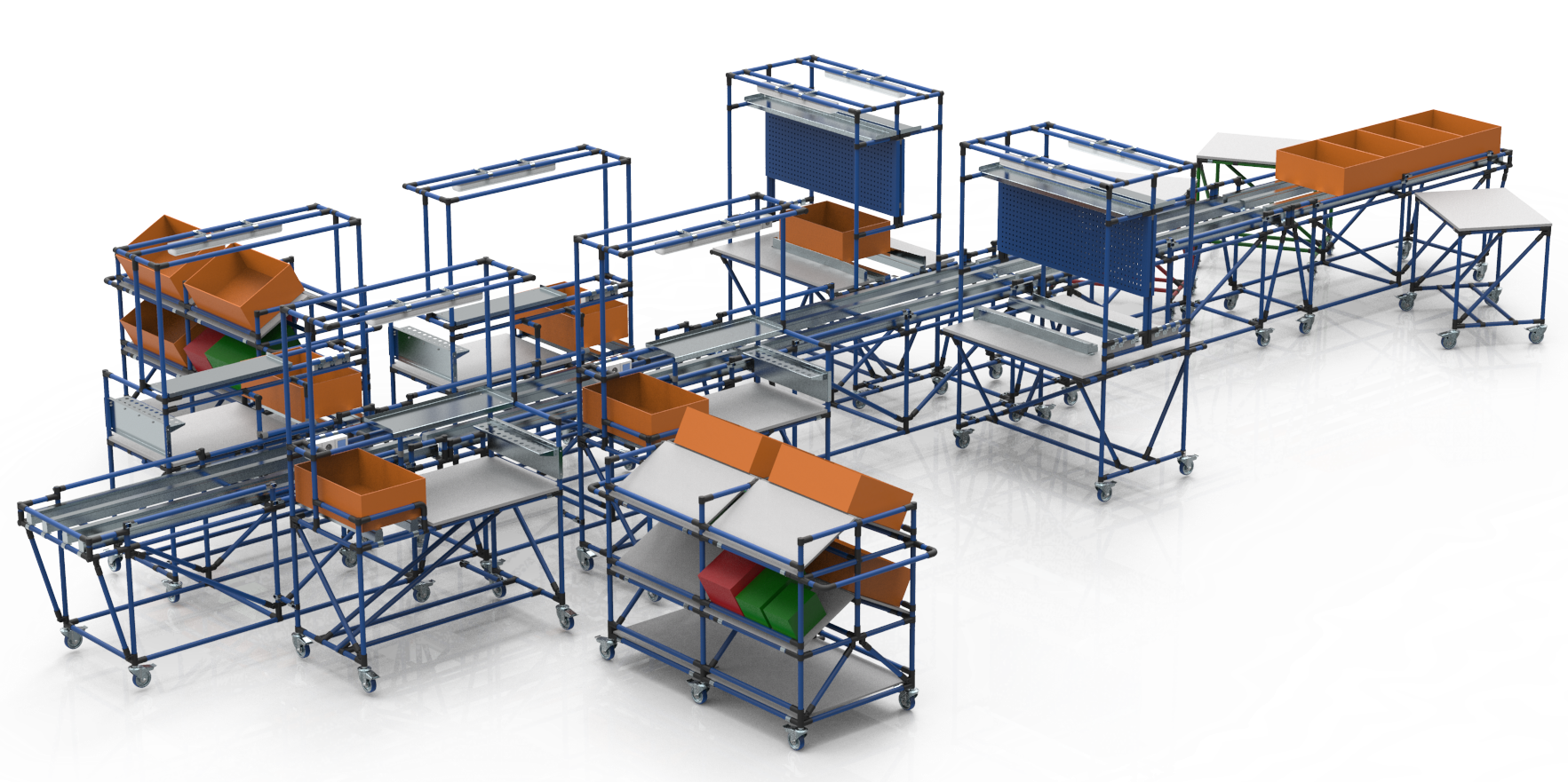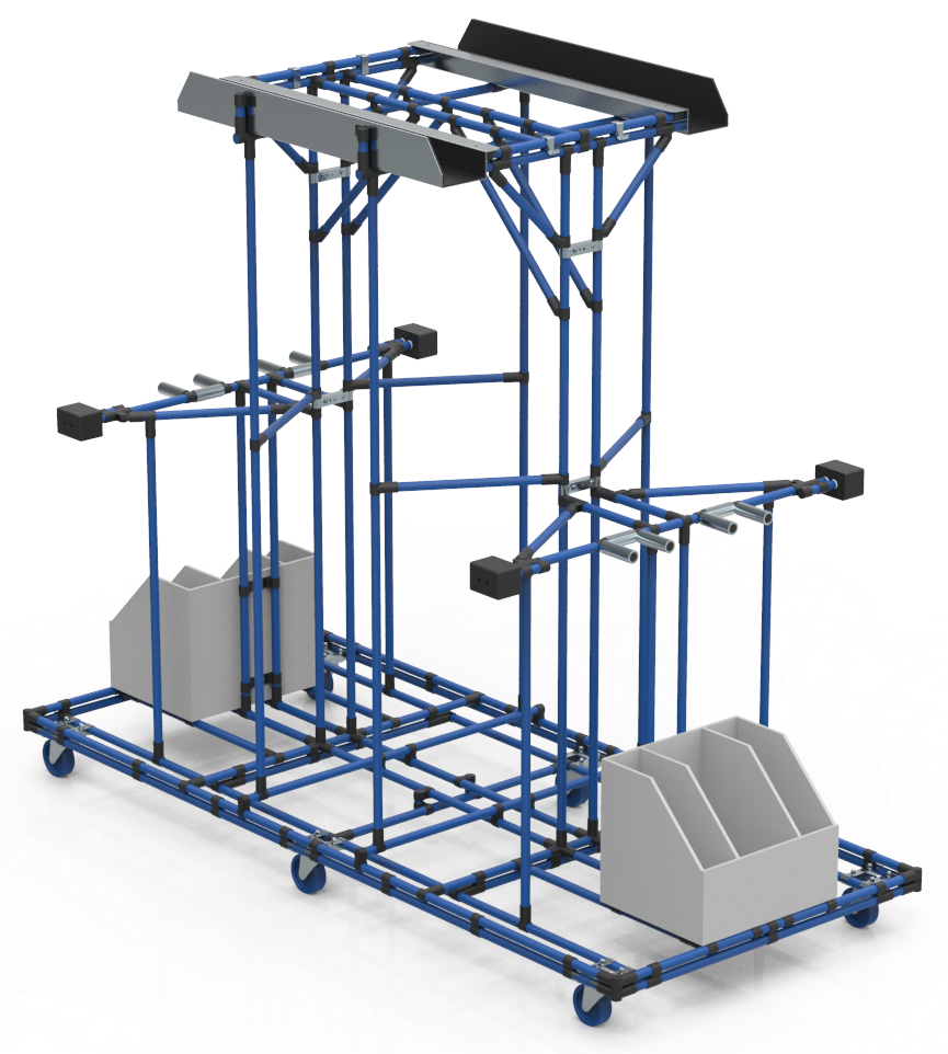 Our modular Lean pipe & joint systems enable rapid build‑out of workstations, transport carts, and racks—flexible, robust, and easy to reconfigure.